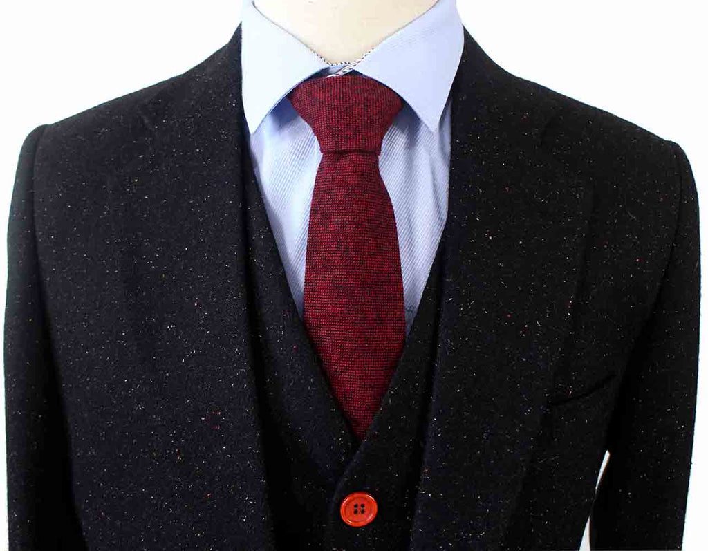 炭灰色斑点多尼戈尔粗花呢三件套西装