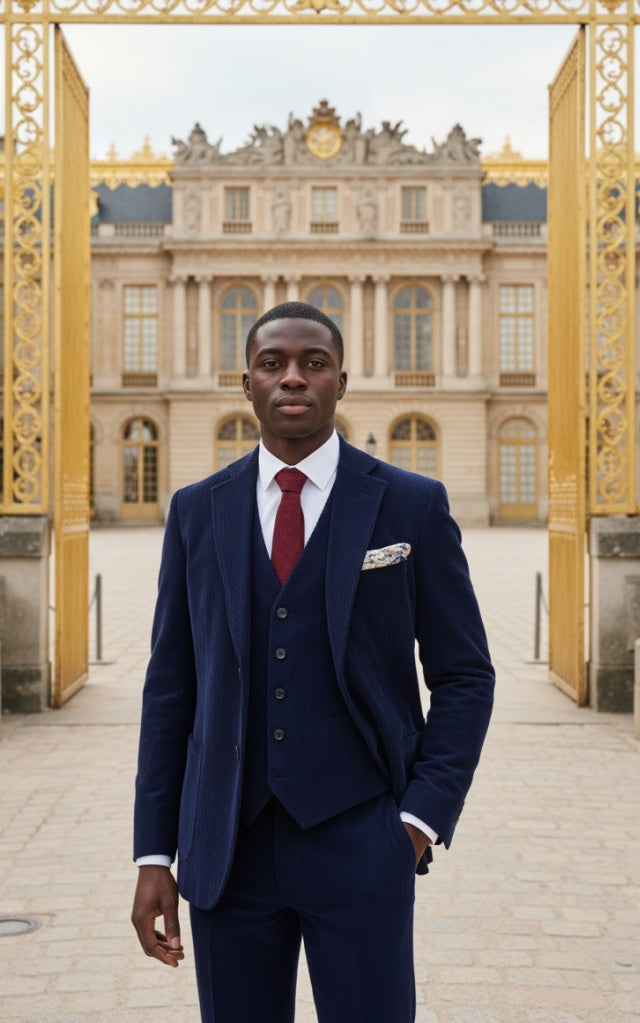 这款棕色灯芯绒三件套西装将温暖、质感和复古魅力完美融合,打造出精致现代的廓形。采用挺括的灯芯绒面料,其垂直纹理清晰可见,赋予面料丰富的层次感和独特的个性,同时保持简洁利落的剪裁,是秋冬季的理想之选。外套采用经典的双扣设计,线条流畅利落,搭配贴袋,增添了一丝休闲又不失精致的气息。配套的马甲提升了整体造型的和谐感,无论是作为一套完整的三件套穿着,还是单独搭配,都能轻松驾驭各种场合,打造时尚休闲的造型。同色系的领结更添正式感,使其成为婚礼、节日庆典和优雅晚宴的绝佳之选。浓郁的棕色调为整体造型带来自然的温暖,与灯芯绒的纹理形成柔和的对比。在光线的照射下,面料呈现出微妙的色泽变化,赋予西装鲜明而独特的个性。经典、自信、个性十足——这款棕色灯芯绒三件套西装专为那些想要经典剪裁并带有大胆纹理元素的人士而设计。